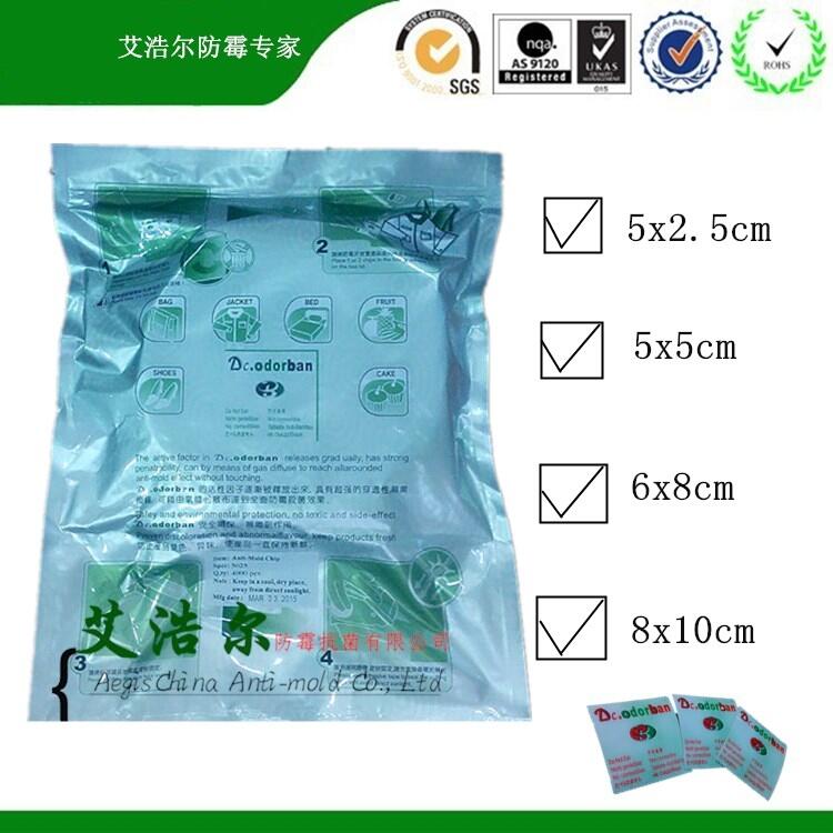 在皮革、服装、家具、家居用品、工艺品、轻工业、食品等产品的销售及运输过程中,由于受到地域气候的影响,最令人担扰的就是产品发生霉变,以往是采取在包装内放置干燥剂,或由客户指*定放置进口防霉片和其它由硅胶浸泡一些药水的普通防霉剂等。干燥剂是利用硅胶等原料的吸潮制造干燥环境,从而达到防霉作用,由于产品的包装环境不密封,有大量的水分,干燥剂只能吸收其中少量水分,而且不能抑制霉菌生长。其它普通防霉剂价格虽然比进口防霉片便宜,但防霉效果不明显。高效环保DC.odorban防霉贴是艾浩尔开发的高科技产品。已经在国内外申请多个项目的发明专利,其防霉机理是由KL升华剂常温升华将WASAOURO带到环境中杀死青霉、曲霉、球毛霉等霉菌,制造不利于霉菌生长的环境。