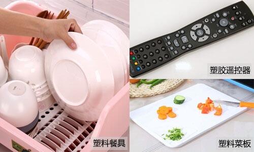 国内外包括家电、日常生活用品等很多领域的产品都在使用抗菌塑料,以制成有利于广大消费者健康的各类消费品,如:家电制品中的 电冰箱、洗衣机、空调器、洗碗机、饮水机、换风扇、各类电器的遥控器;电子通讯中的电话机、移动电话、传真机、计算机键盘及鼠标; 卫生洁具中的卫生设备、浴盆、坐便器;厨房用品中的餐具、菜板、 保鲜膜、过滤网、洗菜蓝等;医疗卫生中的注射器、输液器、输液管; 日用品中的牙刷、污物桶、香波容器等。
