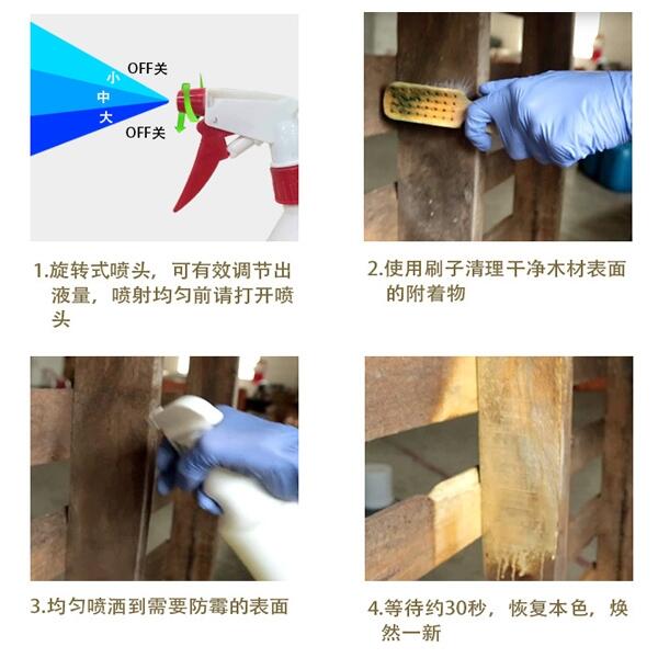 iHeir-CM 除霉清洁剂可被直接混配入有机和无机配方中。它也可被用于有机和无机基质的处理,其适用的溶剂有水、乙醇、酮类、酯类、烃类和氯代烃类。其处理方法为用软皮、抹布或毛刷沾少量iHeir-CM 除霉清洁剂擦拭竹木制品、轻工业工艺制品、长纤、短纤纤维和织物、天然皮革及人造皮革表面即可。并能除去水副产物甲醇。在使用之前,必须先进行生产规模的试验,以确定*佳应用工艺条件,诸如时间和温度条件等。