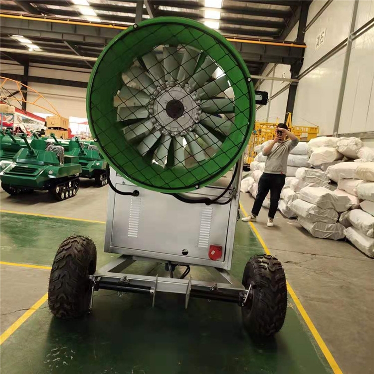 2.出雪量大:Z大造雪量可以达到每小时80立方米。其大功率的轴流风机,使有效地造雪距离更远,覆盖面积更大。