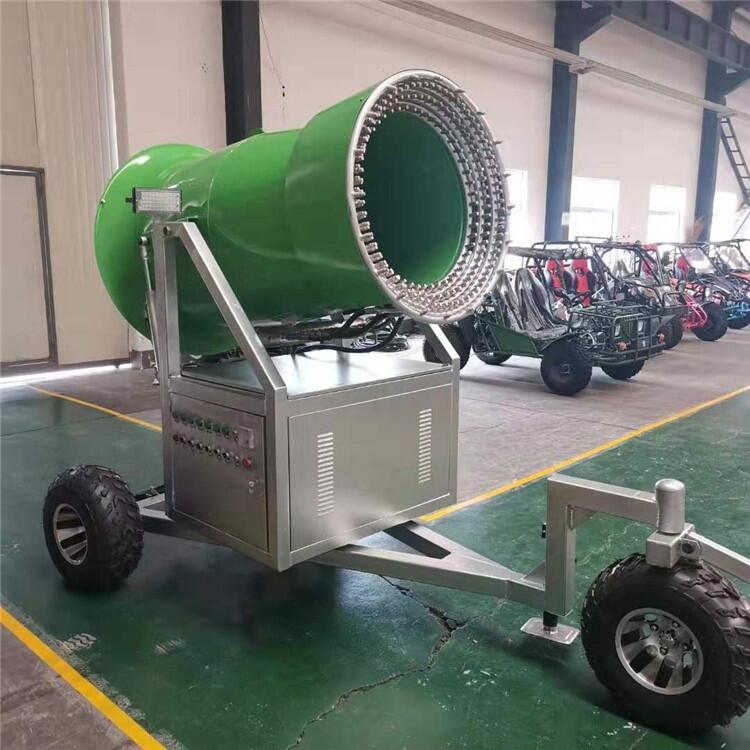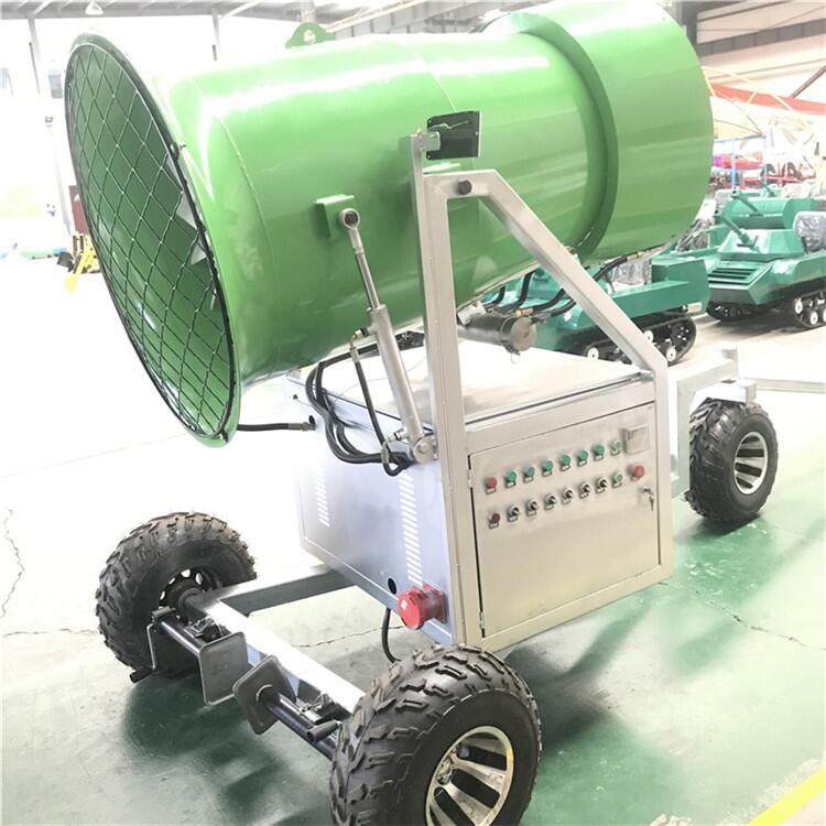 金耀造雪机是可以为您的雪场提供的设备,它能耗低、造雪机成本低,出雪质量高。从环保的角度来说,它不添加任何添加剂,只需要足够的水源就可满足滑雪场的用雪需求,所以它是造雪机市场上出色的品牌造雪机。 金耀造雪机性能: 1、自动摆头造雪还可根据需要进行控制,360度造雪无死角的设计,使得它造雪的覆盖面积更远。 2、我们是自主设计生产的源头厂家,省去了中间商的层层差价,利润空间大,使您较少的成本,获取更大的收益。 3、造雪机机筒部位分布四排310个高性能喷嘴,能在0度时稳定造雪,零上温度造雪机,且造雪机出雪量大。 4、控制装置,随时掌握造雪机的工作状态,如遇故障,自启报警装置,便于及时处理。 5、采用德国无油涡旋式空气压缩机,零耗油,终身免维护,性能优,厂家直销,临界温度高温造雪。 6、设有喷嘴加热装置、可随将结冻的喷嘴融化,喷嘴耐磨、装卸容易、便于清洗保养使造雪工作更稳定。 这款造雪机的操作非常的简单,所有的按钮都在一个方向,是经过我们中欧协作新推出的一款环保节能造雪机,价格也相对更便宜,高温易维护,操作简单,材质过硬,耐用经济型,能满足不同滑雪场的造雪需求。