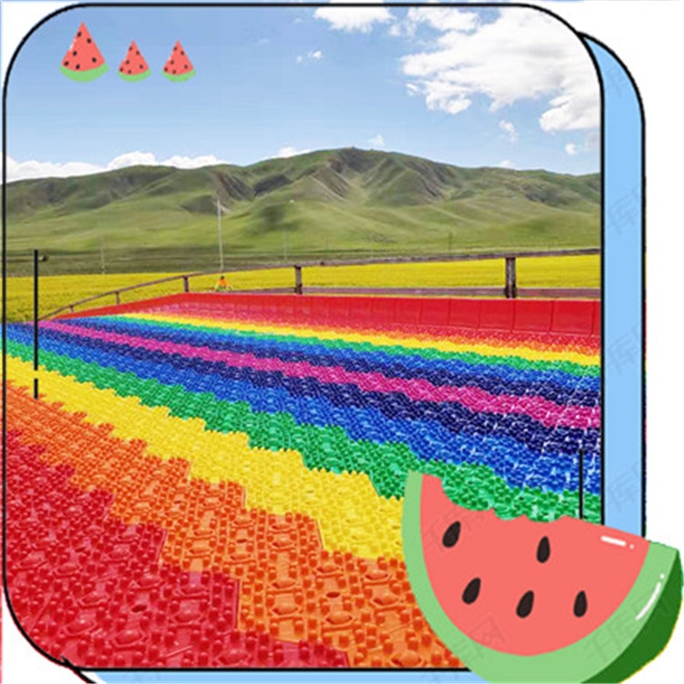 在七彩的滑道上飞驰而下,在草地上相互追逐,旱地七彩滑道厂家专业的滑草设备,无需担忧安全问题彩虹滑道也叫早雪滑道,远远望去就如几道彩虹倾泄而下,作为旅游景区的无动力滑道项目,因其刺激、色彩艳丽、投资小回报快、工期短等原因而受到景区的欢迎。彩虹滑道自带的网红属性已经风靡各大旅游景区,更偏重“体验式”的互动项目以低成本帮助区实现了项目升级和营收的飞跃。该项目包含直滑道、波浪滑道、弯曲滑道、浪摆滑道、折滑道、飞包滑道、颠簸滑道等各种类型的法,场地面积可达可小,玩法形式多种多样,公司可以根据景区的实际情况进行定制规划设计。材质高密度聚乙烯乘员单人,双人多人款规格0.29*0.29米坡度13-30度坡道长度50-300米滑道数量通常2-5条底面硬化通常10厘米适用年龄,儿童及成人水泥;槽净宽3.5米