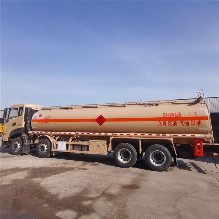 上装配置: 严格按照公告尺寸制作罐体容积30.5立方,实际有效容积30.5方,罐体材质:国标5182铝合金材质,双仓带欧标全套:(两个欧标罐口、两个防溢流探杆、静电插座、油气回收、两个下装口、两个海底阀)安装副驾驶室一侧,罐体采用涨型封头6mm,罐体6mm,带山东80/80专用油泵,双仓带泵进泵出3寸管道3寸出口安装副驾驶一侧,后保险杠为可翻转,折叠护栏和附件均采用铝合金材质,两根罐体等长输油管、两个灭火器、一个防火帽、安全告示铝牌、全车欧式锁、牌照灯,其余标配。油漆:铝合金本色、贴反光条、反光带、安全告示、贴 “易燃” 标。