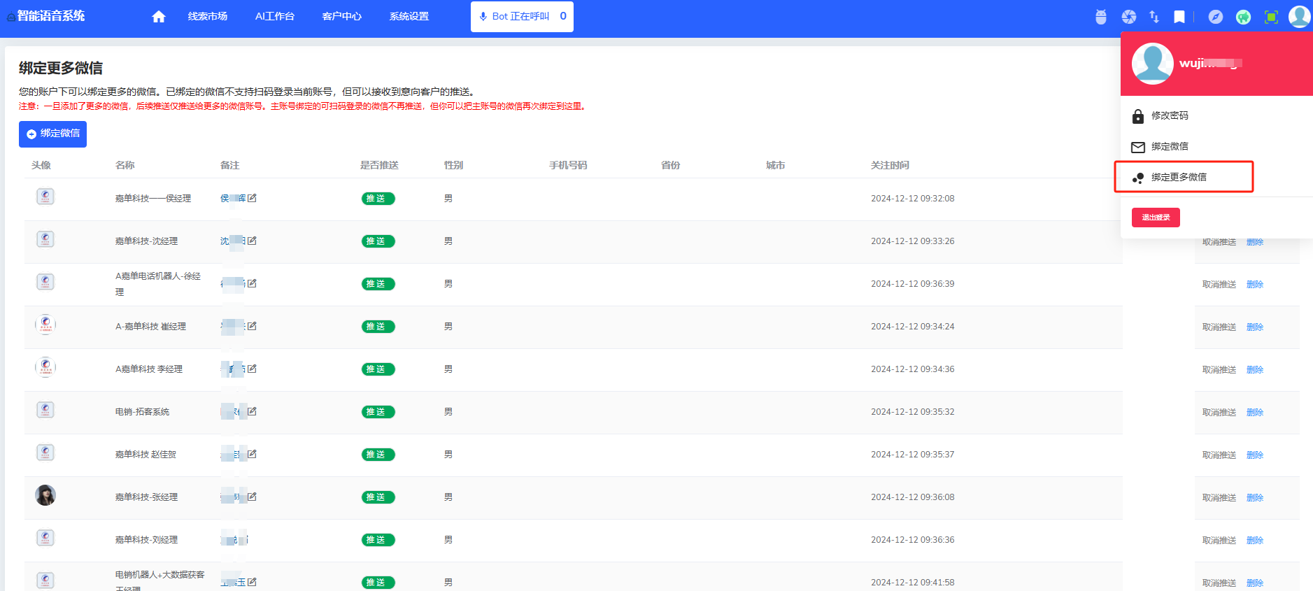 3、AI电话语音机器人无需盯后台,后台可绑定微信,有意向客户,直接推送到微信上,打开之后,可查看客户电话,以及机器人和客户的通话录音,简单方便,针对客户在意的问题,再去重点跟进即可。