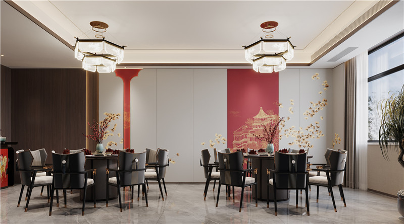 新中式餐饮空间装修设计融合了传统中式风格和现代简约风格的元素,既有中式风格的典雅大气,又有现代风格的简洁明快。以下是一些新中式餐饮空间装修设计的要点: