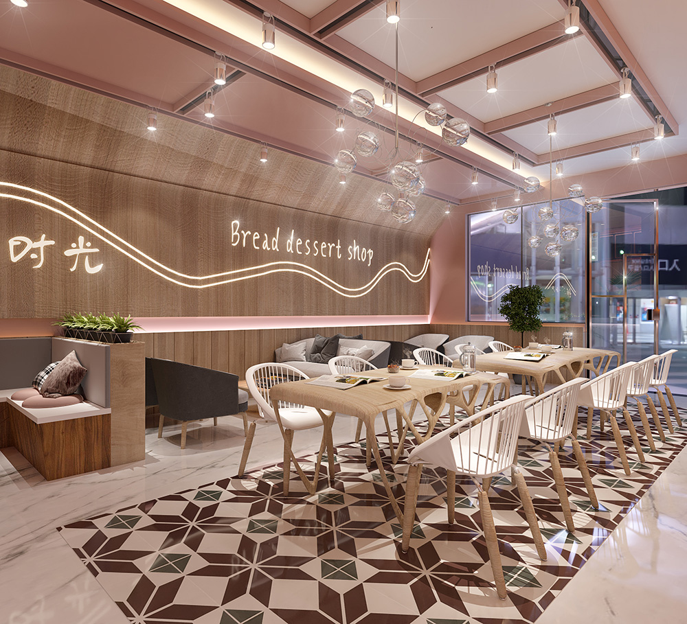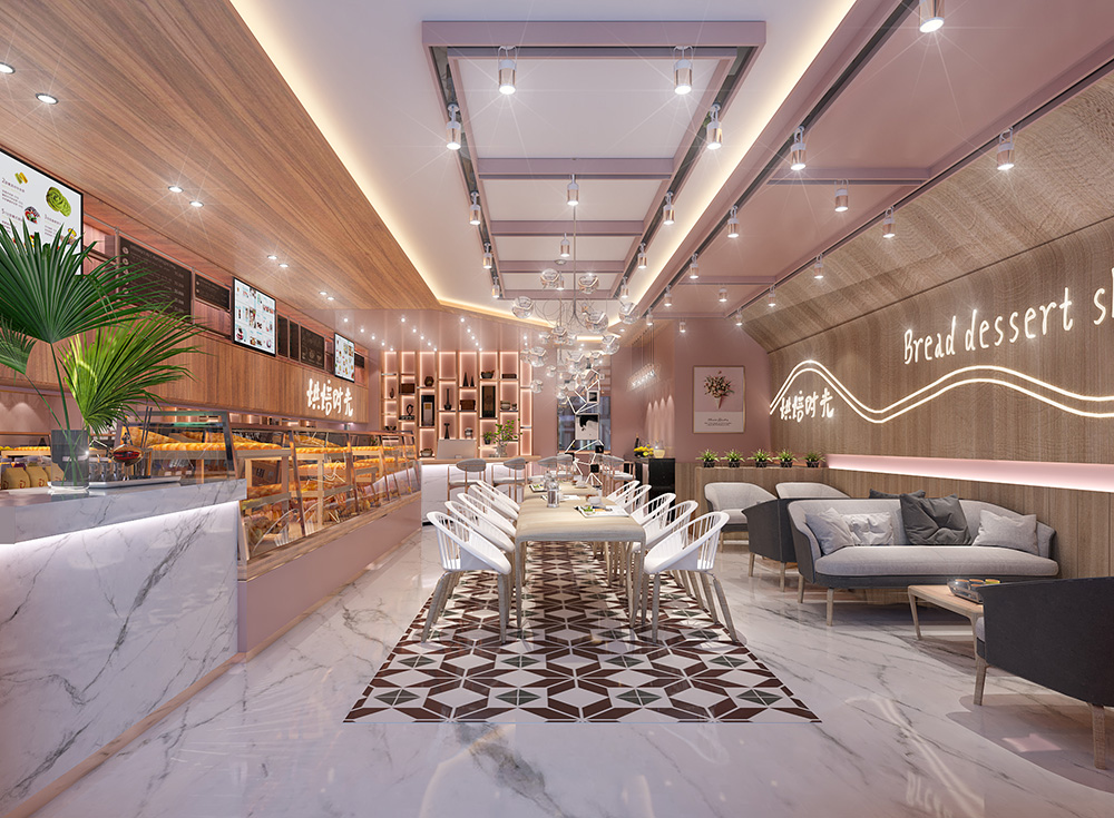 材料选择:在材料选择上,烘焙店应使用环保的材料,如壁纸、地砖、石膏板等。这些材料具有良好的装饰效果。