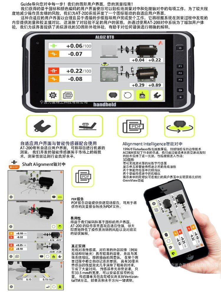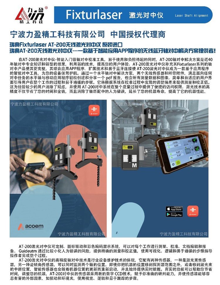 瑞典Fixtbaser AT200激光对中仪/无线蓝牙连接, AT200激光对中仪是基于智能应用程序的对中工具,具有获得的图形用户界面GuideU,可为该工具提供业界的易用性。连接性,移动设备,基于云的平台,应用程序已集成在AT-200对中设备中,使其成为在机器故障和纠正措施之间缩短响应时间的工具。 智能传感器采用CCD技术,可实现的测量性能和对中工作。