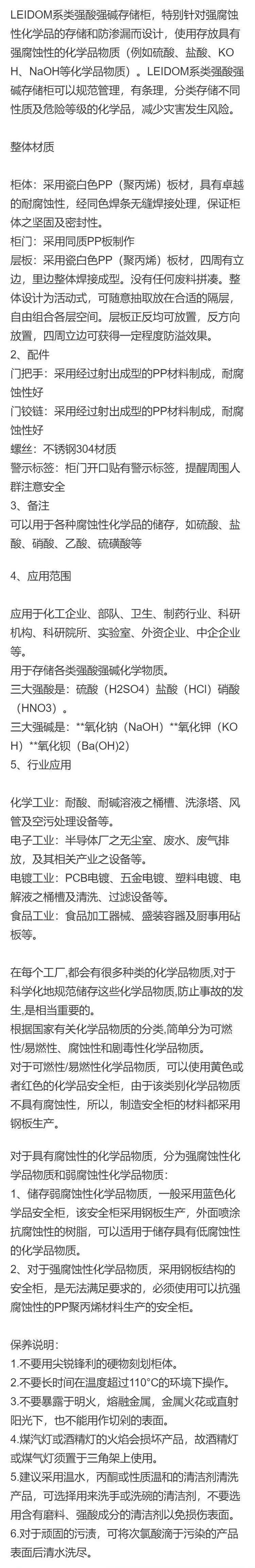 LEIDOM/雷盾 PP药品柜 硫酸柜盐酸柜化学品试剂柜可带视窗 品牌 | LEIDOM/雷盾 | ||