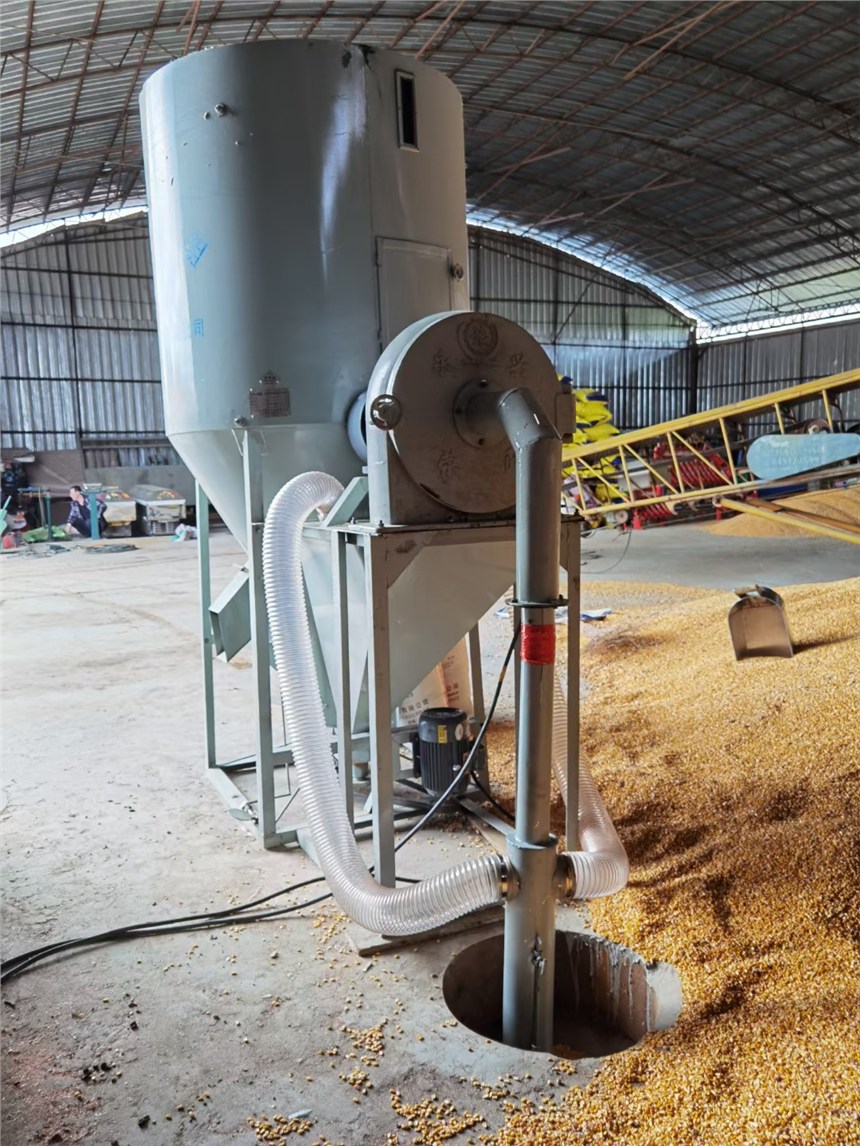 郑州永兴重工机械生产的立式饲料粉碎搅拌机;这是为农村饲养户、小型饲养场、中小型配合饲料厂设计的小型饲料加工设备,同样也可以搅拌腻子粉、化工原料等。集垂直提升、混合仓、水平输料为一体;饲料粉碎搅拌一体机具有结构简单紧凑、一次性小投资、经济实用、维修方便,不需特殊生产场地等优点饲料搅拌机由下方进料口加入需要混合的物料,由饲料搅拌机内的提升螺旋将搅拌物料从立式搅拌机的进料斗进入立式螺旋输送器,向上提升到达顶端后,再以伞状飞抛,从混料筒四周下落,从套筒底部的缺口处重新进入立式螺旋输送器,再次向上提升,如此循环搅拌混合直到混合均匀,打开出料口将物料卸出。
