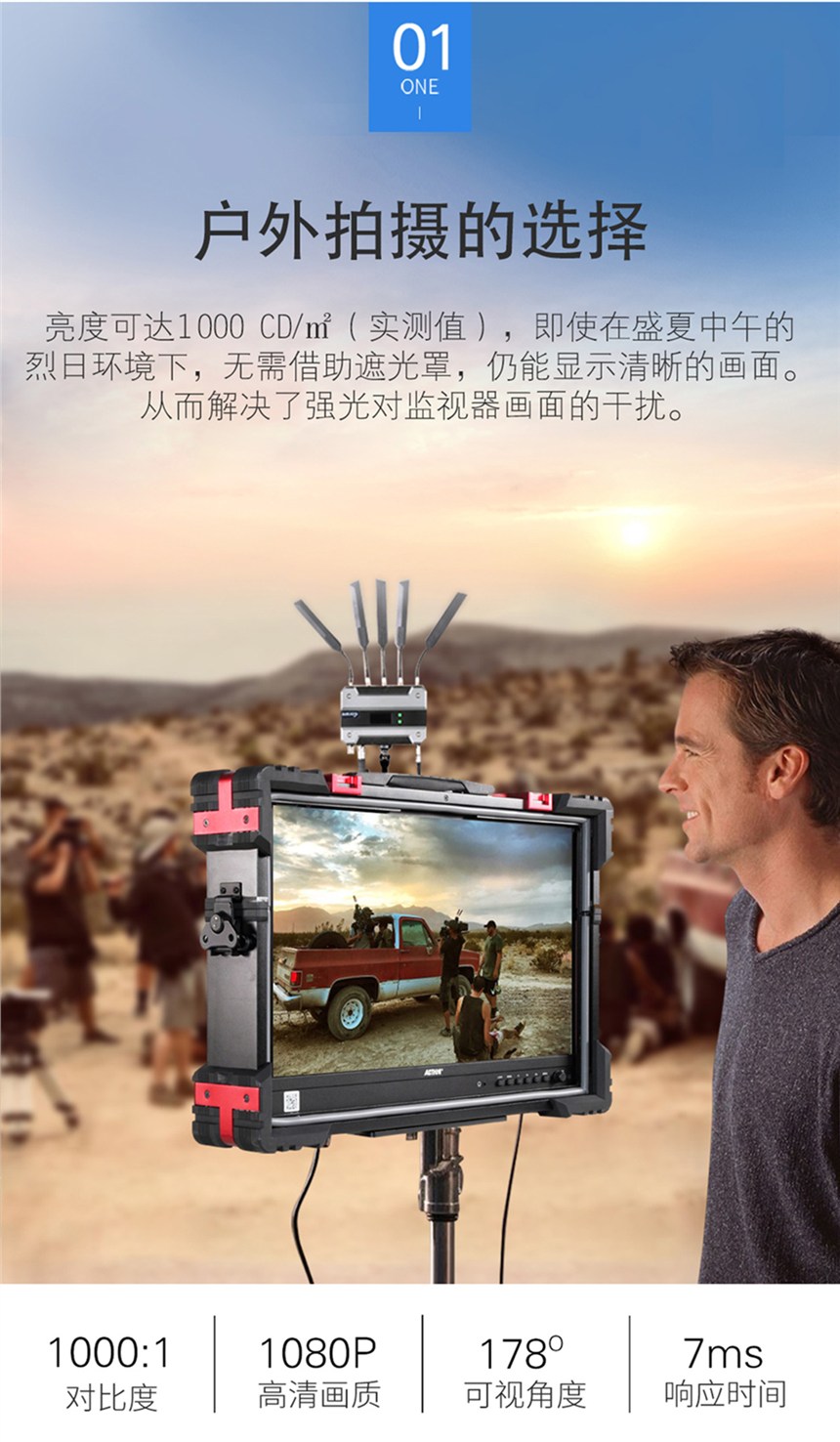 亮度高达1200cd/㎡,户外拍摄首*选监视器设备.