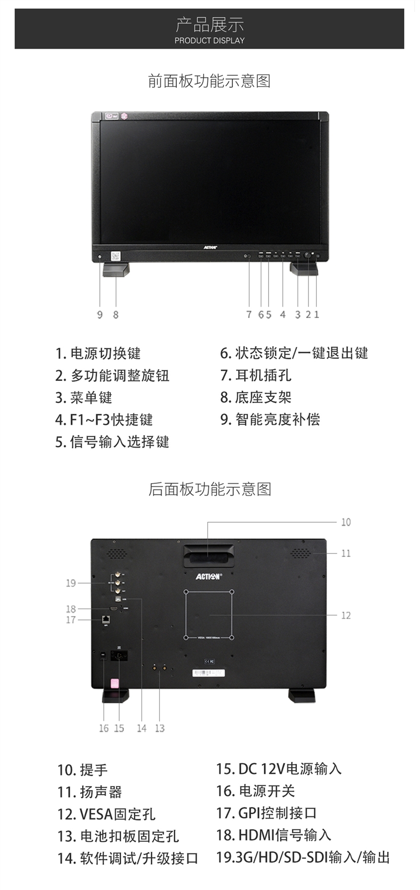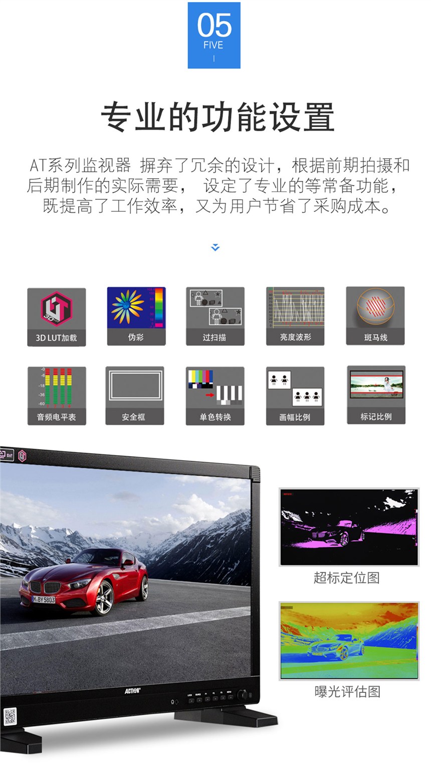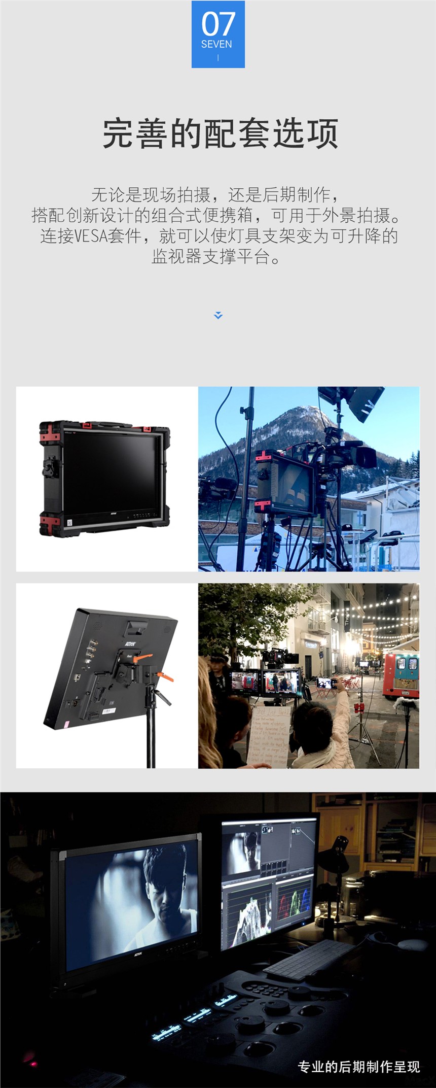 回归了监视器监看画面与色彩再现的基本属性,为用户节省成本 实用、快速、准确的操作方式,常用功能一目了然 无论是现场拍摄还是后期制作,可适应不同的工作环境