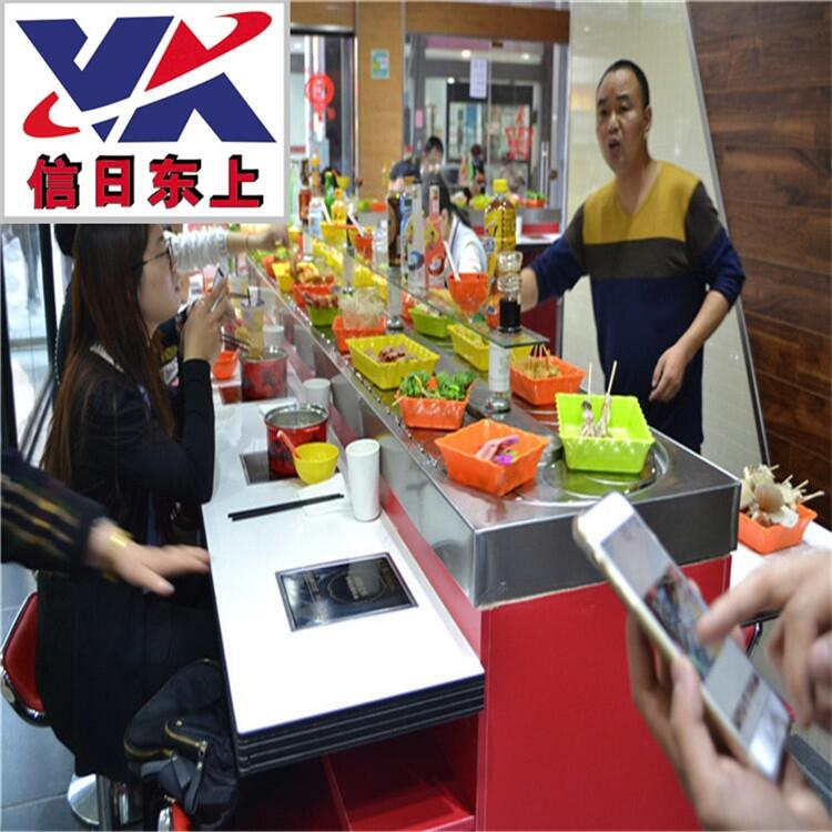2、节省人力物力:食客在各自的座位上可随意选择摆放在输送带上的食品,无需服务员送上,本机以台架代替餐桌,转转火锅设备厂家,可节省大量餐桌及台布。