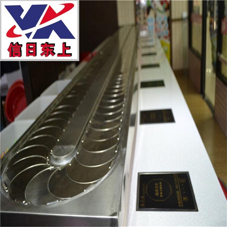 1、 传动系统采用密封式设计,输送链条结构严谨,运行平稳,噪音几不可闻,耐磨片式组合链轮,可延长回转火锅设备的使用寿命。