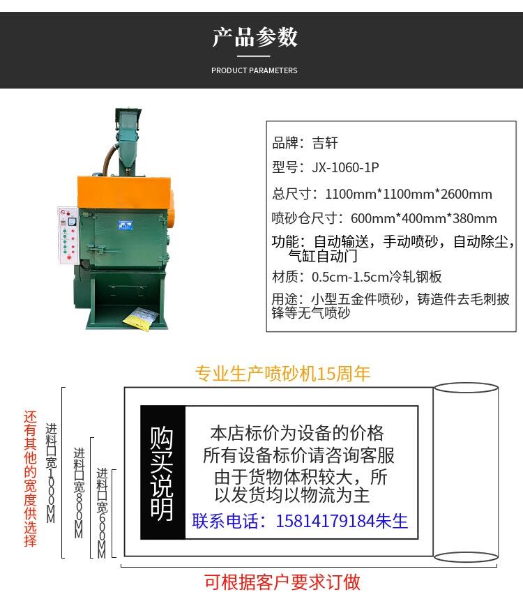2.要看产品的形状,选择喷砂机的规格,一般一米以下的都有固定的规格,特别大的要订做或选择开放式的。